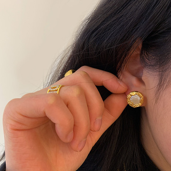 נירוסטה ללא טרפרסק זהב 18 קראט מצופה זהב מרובעים, אמא של פגז חותם טבעת זהב גדולה