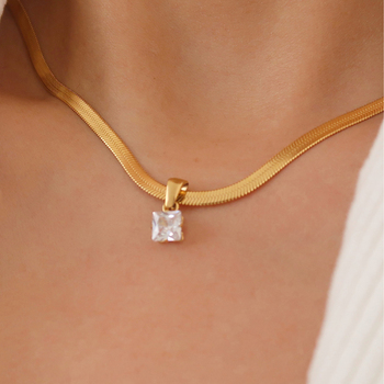 スクエアジルコンペンダントヘリンボーンネックレス女性用防水ジュエリー18K金メッキファッションジュエリーJoyas