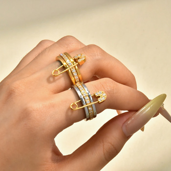 Giấy Clip Zircon vòng thép không gỉ xỉn miễn phí đồ trang sức chống thấm nước 18K vàng mạ đồ trang sức thời trang cho phụ nữ anillos mujer