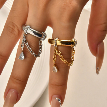 Water Drop Zircon vòng thép không gỉ xỉn Miễn phí đồ trang sức không thấm nước 18K vàng mạ đồ trang sức thời trang cho phụ nữ anillos mujer